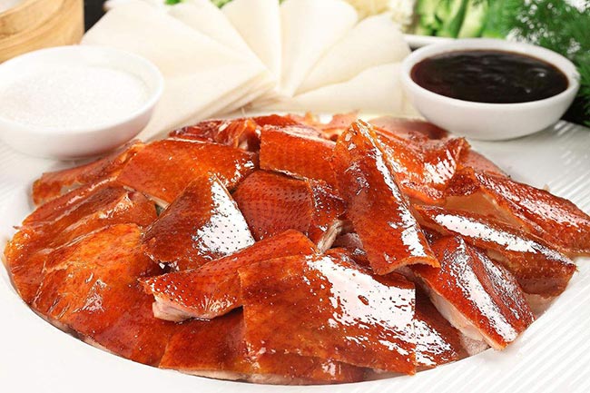 烤鴨是具有世界聲譽(yù)的北京著名菜式,起源于中國南北朝時(shí)期,《食珍錄》中已記有炙鴨,在當(dāng)時(shí)是宮廷食品。用料為優(yōu)質(zhì)肉食鴨北京鴨,果木炭火烤制,色澤紅潤,肉質(zhì)肥而不膩,外脆里嫩。北京烤鴨分為兩大流派,而北京很著名的烤鴨店也即是兩派的代表。它以色澤紅艷,肉質(zhì)細(xì)嫩,味道醇厚,肥而不膩的特色,被譽(yù)為“天下美味”