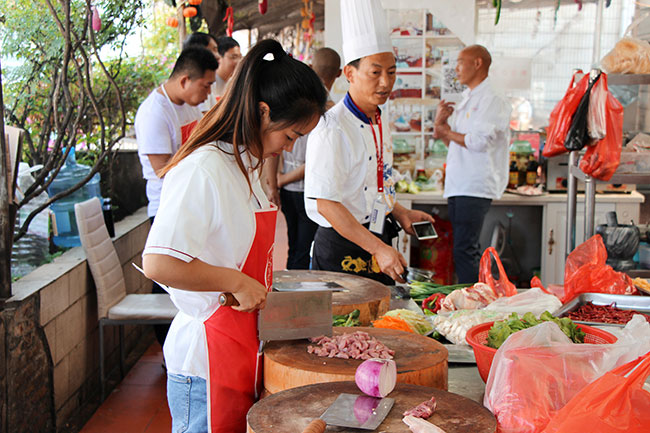 4、 在實(shí)訓(xùn)過(guò)程中,由專(zhuān)業(yè)師傅帶領(lǐng)學(xué)員去調(diào)味品市場(chǎng)、餐飲器具市場(chǎng)對(duì)原料和后廚設(shè)備進(jìn)行的現(xiàn)場(chǎng)識(shí)別和購(gòu)買(mǎi)要領(lǐng)的教學(xué)。讓準(zhǔn)備開(kāi)店學(xué)員在原材料和器具的采購(gòu)無(wú)后顧之憂(yōu)