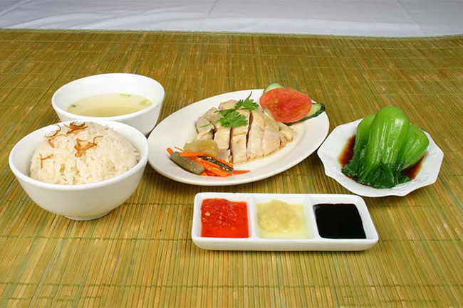 海南雞飯是一道中國海南省美食,在新加坡及其他東南亞成為國菜。主要食材是雞肉和大米,主要烹飪工藝是燙煮。海南雞飯起源于中國海南島的文昌市。海南人會(huì)以文昌當(dāng)?shù)氐陌浊须u做法,同時(shí)配以雞油和浸雞水烹煮的米飯,所以在海南島俗稱為文昌雞飯。20世紀(jì)初期,隨著移民潮,這個(gè)菜式傳至東南亞,包括馬來西亞、新加坡及泰國等地發(fā)揚(yáng)光大。