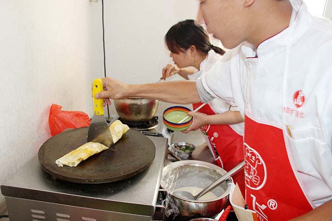 創(chuàng)飛小吃實(shí)訓(xùn)基地煎餅果子技術(shù)實(shí)訓(xùn)