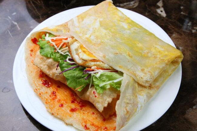 創(chuàng)飛特色煎餅果子,餅皮白嫩軟而不爛,配上金黃的雞蛋撒上切好的蔥花,噴香撲鼻,中間包裹油條或者薄脆,油條軟嫩酥脆,薄脆松脆可口,加上面點(diǎn)大廚精心調(diào)制的秘制醬料,煎餅果子金黃的餅皮點(diǎn)綴著蔥花和黑芝麻,香氣撲鼻。