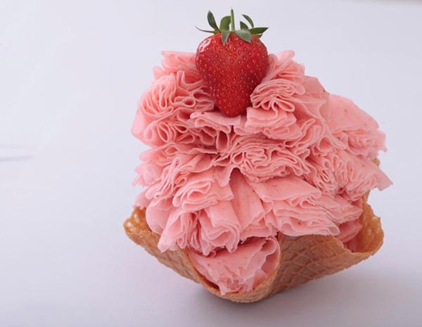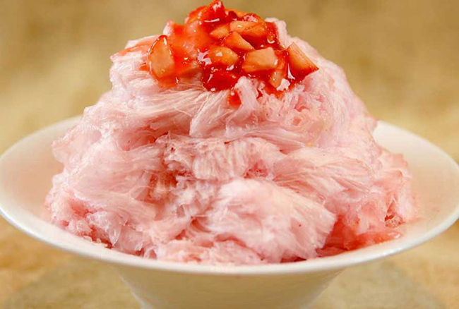 零攝氏度以下的低溫,是神奇魔術(shù)師,五顏六色的水果和牛奶在他的手下,一個(gè)個(gè)華麗麗變身。層層疊疊,絲絲縷縷,如細(xì)膩絲滑的彩色雪山。驕陽和驟雨交替上演的五月天,提前讓人感受盛夏的熱辣脾氣。