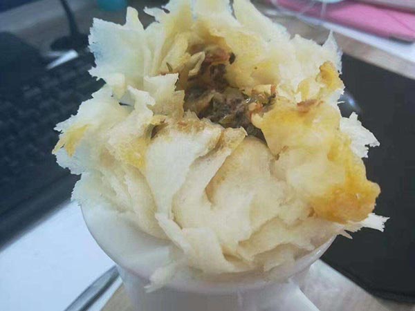 破酥包子是 昆明的傳統(tǒng)風味小吃,是由低筋精白面粉、熟豬油、熟云腿、蜂肉丁、冬菇末等制成。破酥包子含有蛋白質(zhì)、碳水化合物、維生素,營養(yǎng)豐富,老少皆宜。由于這種包子負有盛名,現(xiàn)在已經(jīng)從民間小飯館或大排擋,走進了昆明市的各大賓館飯店,幾乎在各種高檔筵席、宴會、自助餐、風味餐中都能夠品嘗到破酥包子。