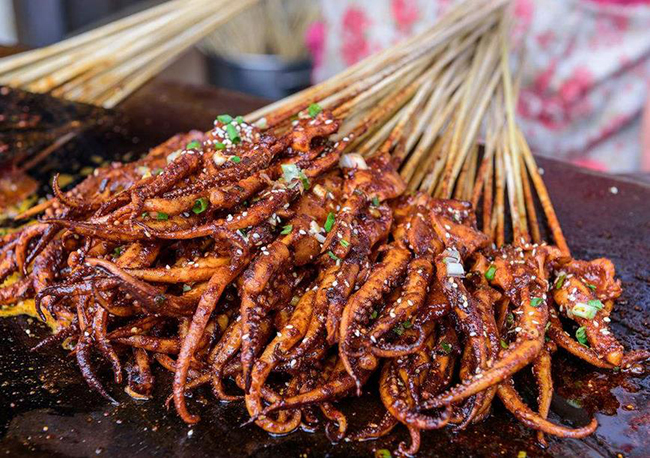鐵板魷魚是一道街邊小吃,是用鐵板把魷魚煎熟后,再用鐵鏟將魷魚切段,然后撒上特制醬做成。其食材講究新鮮,鮮味完全來(lái)自食材本身。入口沒(méi)有一點(diǎn)腥味,頗受鐵板燒愛好者顧客群喜愛。好吃街、旅游景點(diǎn)、人流密集的小巷等等,都可以吃到鐵板魷魚這一特色小吃。也許你可以看見經(jīng)營(yíng)者不聽的揮動(dòng)著手中的排刷,不停地翻滾著手中的魷魚串,鐵板上發(fā)出“嘖嘖”的聲音,一股香味飄到你的鼻前。我就知道,你口水在流淌了。。。