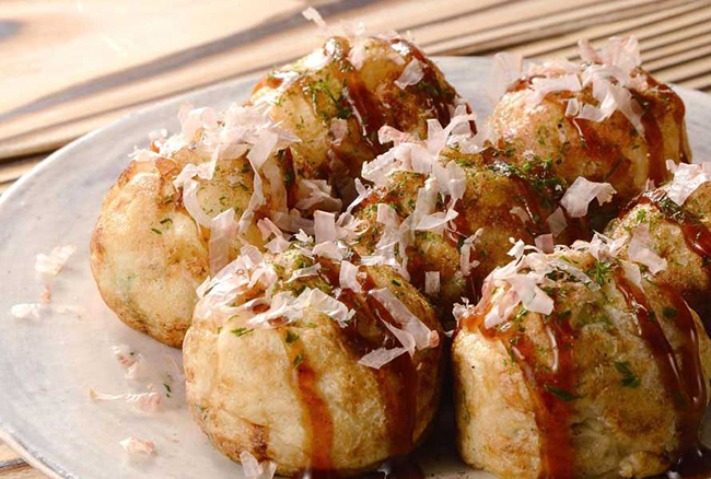 章魚燒 ,起源于日本大阪,原名“章魚小丸子”,其歷史要追溯到大正年代。素有皮酥肉嫩、味美價廉之特點,成為日本家喻戶曉的國粹小吃。章魚小丸子早隨后在東南亞各地區(qū)流行起來,成為各地區(qū)的新興食品之一。章魚小丸子的成份主要是章魚,章魚燒粉,柴魚片,海苔,沙拉醬,章魚燒醬等。.